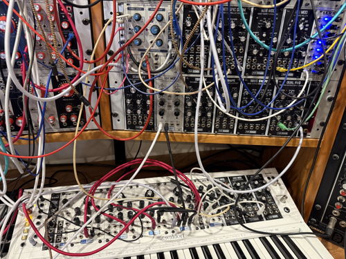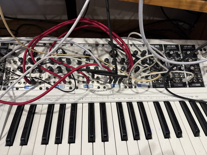 He says he also uses the AJH Entropic Doom Noisillator for percussive sounds and mixing in noise sources into his synth voices. "The Entropic Doom is brilliant - I use this for percussive things, but I will also put another oscillator through it and have it interact with the noise." Once he finds a patch he likes, he tends to stick with it. "Some of these shows I work on last for six months at a time, so if I get a patch that I like, it stays. The MiniMod is kind of its own self-contained instrument that always stays patched, and then I just extend on from that."